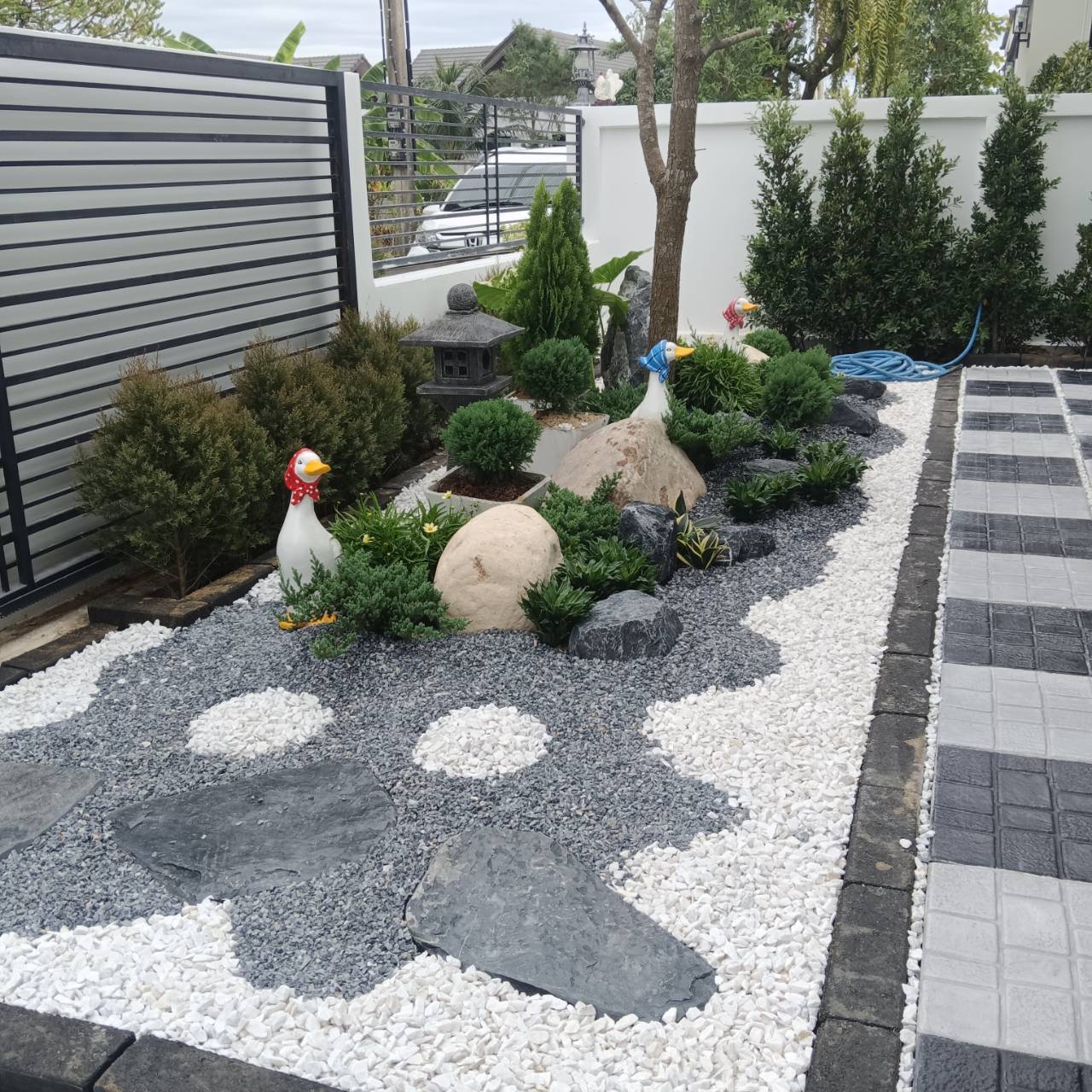 ร้านออกแบบจัดสวน รับออกแบบจัดสวน ปลูกหญ้า บ่ปลาคราฟ ม่านน้ำตก